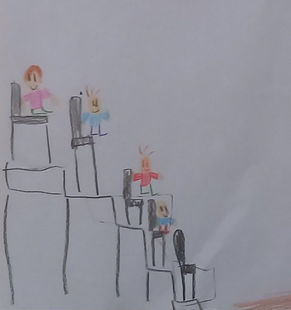 Die Kinder haben verschiedenfarbige kleine Papierquadrate nach dem Zufallsprinzip zu einem großen Quadrat zusammengestellt und damit ein kleines „Richter- Fenster“ in der Schule gestaltet.