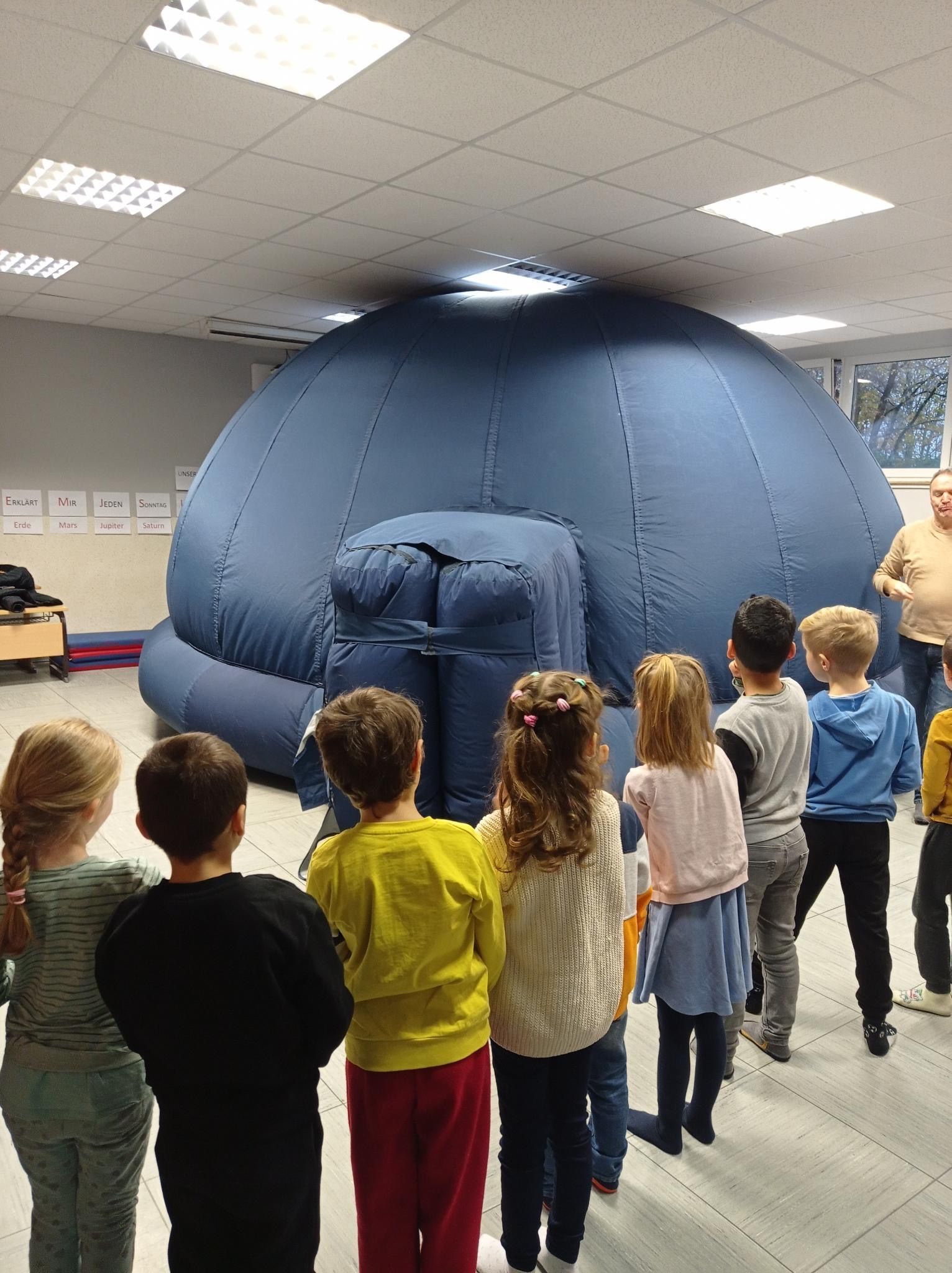 Den krönenden Abschluss der Woche stellte der Präsentationstag dar, an dem die Kinder ihren Eltern zeigen konnten, was sie in der Woche alles gelernt und gebastelt haben. Ein weiteres Highlight war der anschließende Besuch eines mobilen Planetariums, in dem die Schülerinnen und Schüler Sternenbilder und Planeten aus nächster Nähe bestaunen konnten.