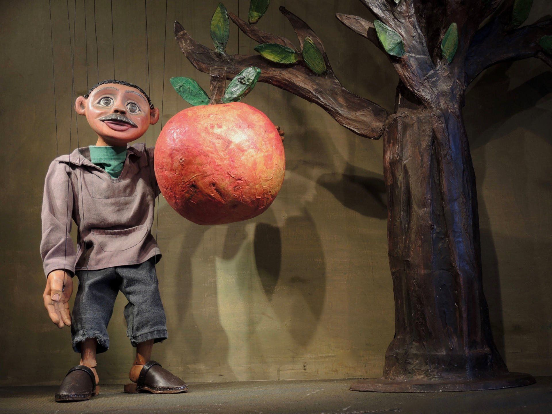 Am 23.10.2019 besuchte uns das Klapp-Theater in der Schule. Alle Schülerinnen und Schüler versammelten sich vor der Bühne und schauten sich die Geschichte „Das Apfelmännchen“ an.